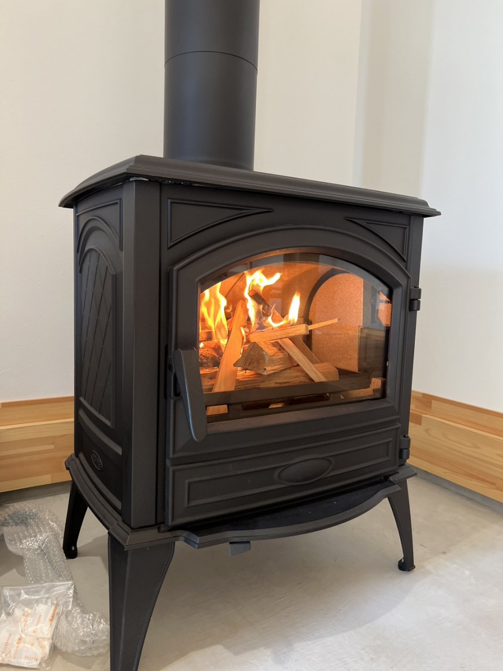 先日4月にお引渡しをしたお客様の家に 薪ストーブ の火入れにお伺いしました★